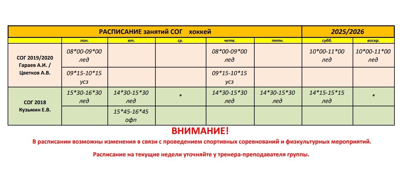 Расписание спортивно-оздоровительных групп по фигурному катанию